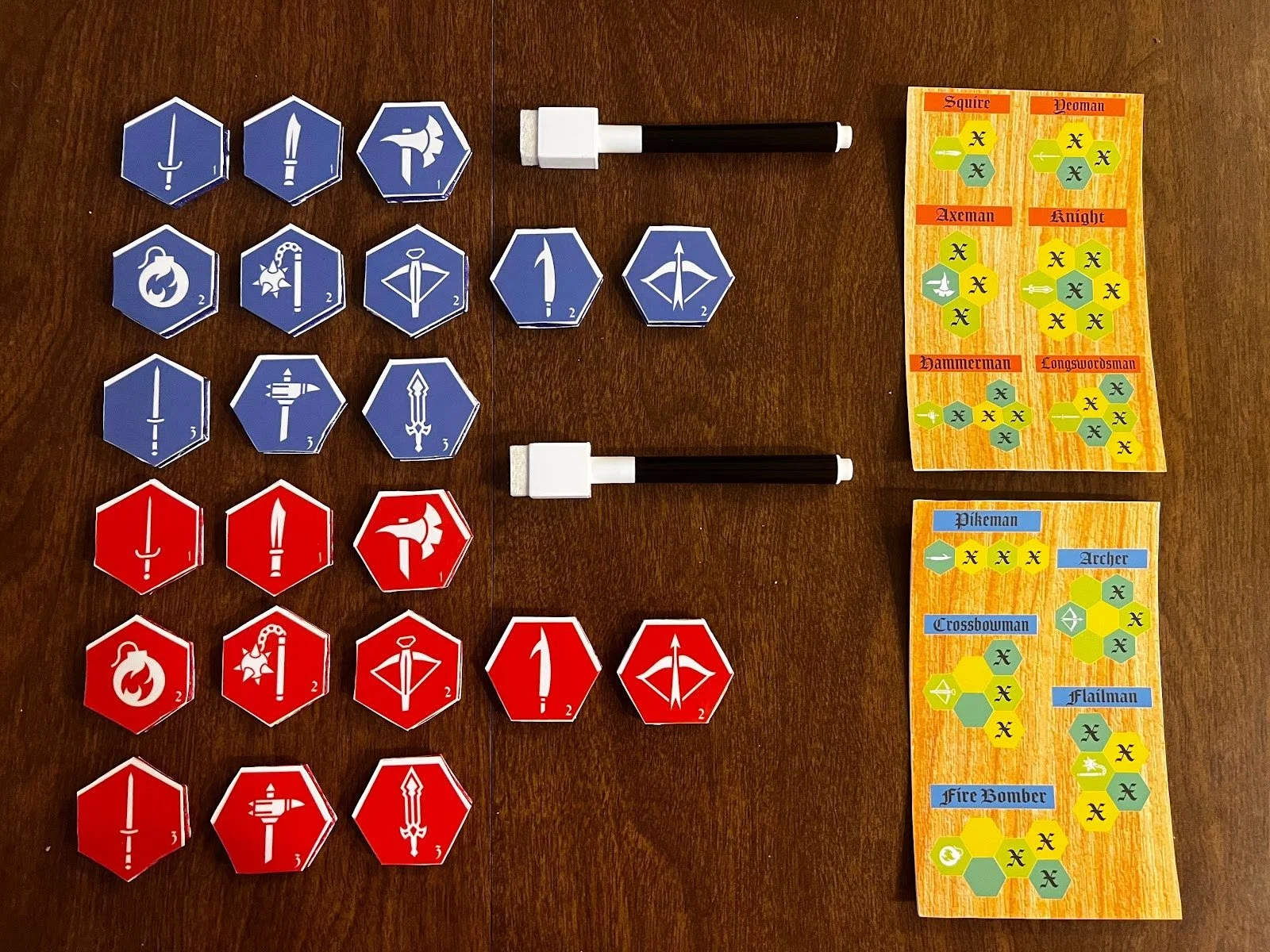 The game pieces of Tourney